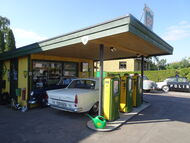 Strax efter på vänstra sidan ligger den nostalgiska BP macken.