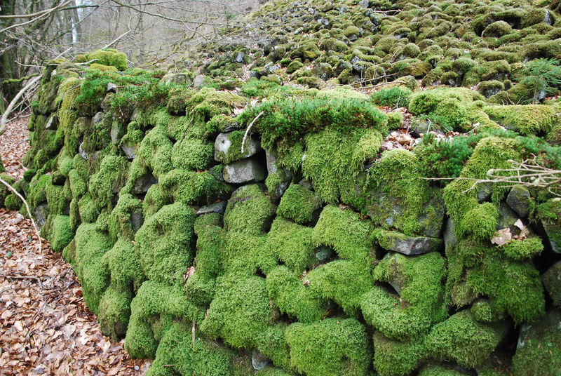 2012-04-14: Av stenarna har man nog gjort det imponerande stengärde som löper i kanten av rasbranten.