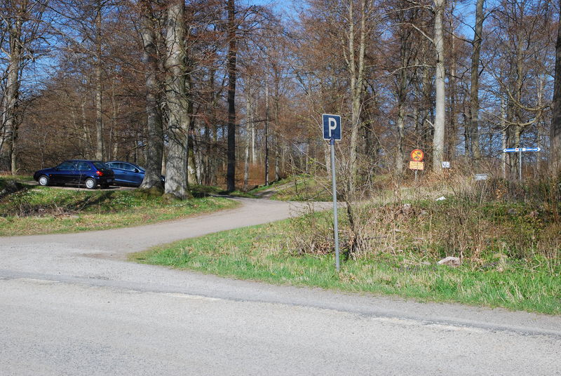 2013-05-05: Strax efter godset är en parkeringsplats vid Karpadammen.
