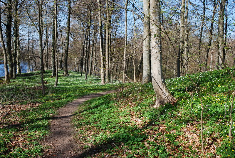 2013-05-05: Bekväm stig i lövskog bland vitsippor.