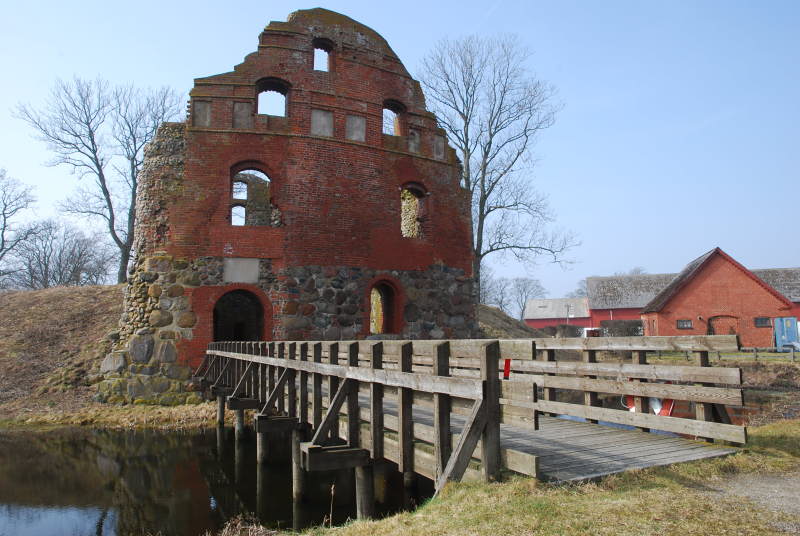 2011-04-02: Idag återstår yttermurar, en del av vallen och vallgraven.
