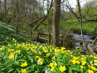 ravinartad karaktär. Bäcken omges av lövskogar,