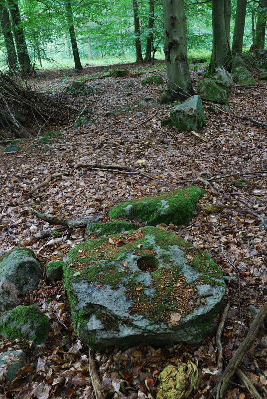 2009-09-13: I skogen ligger kvarnstenar.