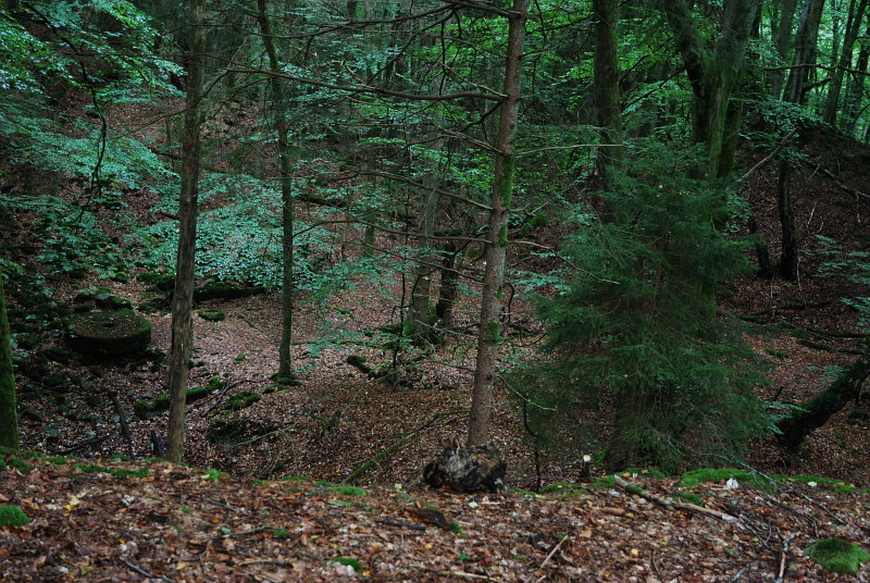 2009-09-13: Det är backigt. Ser ner i en grop.