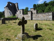 9 October 2010: Drive to Västerstad to see the ruins of Västerstad's original church. The ruin is located at the vicarage in Västerstad, just east of Löberöd, where I park. The church was built in the 1100s, when the new church was built in the late 1800s it was abandoned. The church is known for that here the soberness apostle Peter Wieselgren was a vicar from 1833 to 1847. Given that alcohol consumption in those days was much higher than today did one probably need an apostle. In the garden of the parsonage next to the church is a memorial stone of him. At the wall facing the road is yet another memorial stone: October 8, 1678 were freebooters surrounded at the rectory, betrayed by the priest, and killed by a Swedish cavalry troop. I walk into the ruins and the abandoned grave yard around it. Sheep graze to keep the place open. Old largely illegible headstones, some from the 1600s, are standing or lying. On the tower, which it says 1748 on, is brick visible in the thick wall. In one corner stands an altar. There should be a mark by a craftsman on a wall, but I can not find it. The ruins have been renovated and is as far as I know used for open-air religious services and weddings. |