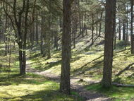 kusten, genom gles tallskog, mattor med lavar och mossor. Förbi