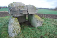 tre håll stenblock som väggar, på dem vilar ett