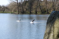 på sjön. En vråk övervakar det hela.