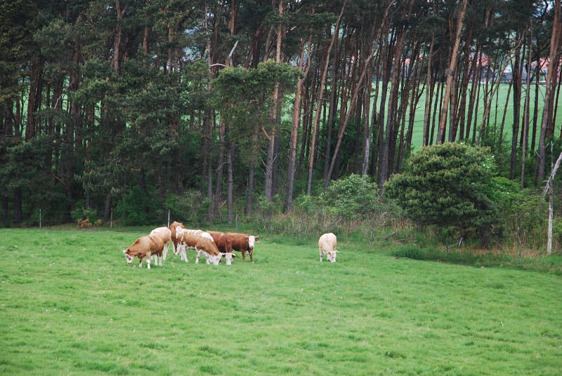 2010-05-27: I norr är en talldunge. Backarna betas av kreatur.