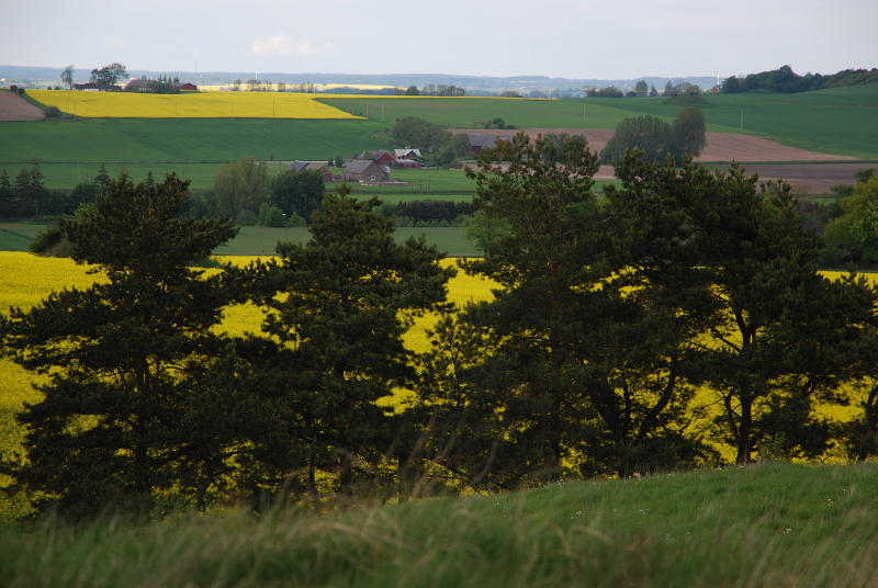2010-05-27: Från högen ser jag norrut ut över ett rapsfält.