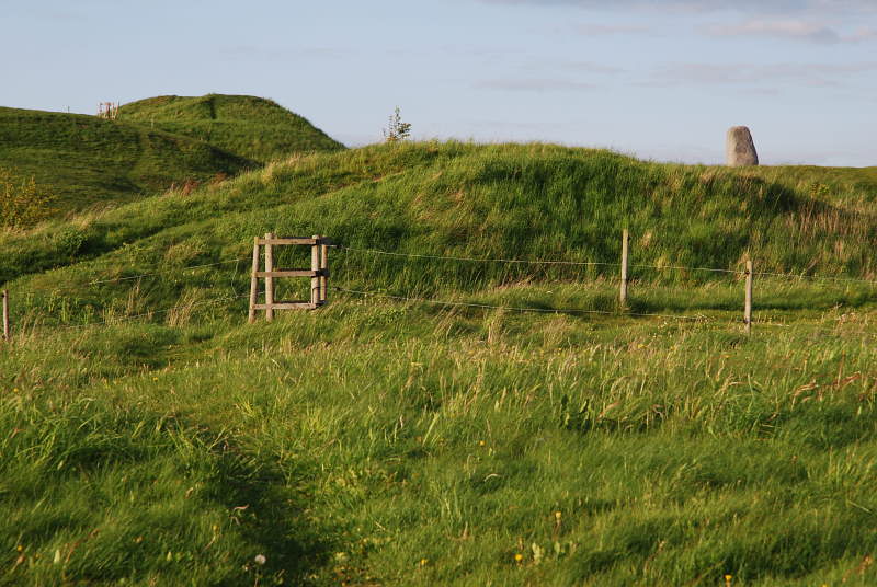 2010-05-27: För att skydda gravhögarna från de betande korna så är högarna inhägnade, vinkelgenomgångar gör så att man kan ta sig fram till dem.