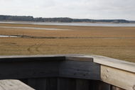 Västra Vombsjöntillgänglighetsanpassat fågeltorn med utsikt över ängarna väster om sjön och delvis mot sjön, med fikabord, och en enkel badplats. I övrigt rätt oländigt utmed sjön. 10 mars 2012: Det ryktas om att tranorna är på gång så smått. Kör till fågeltornet vid ängarna väster om Vombsjön. Det ligger intill vägen som följer Vombsjön. Till tornet är en ramp så att även rullstolar kan köras upp på tornets första avsats. En informationsskylt berättar om vad som finns att se. Detta är en del av Klingavälsåns naturreservat. Vid tornet finns rastbord och grillplats. Jag parkerar och klättrar upp i tornet. Ängarna är delvis översvämmade. Hör gäss på långt håll. Kan se några grågäss gå ute på ängarna. I öster ser man ut över Vombsjön. Därute simmar en ensam knipa. Det är nog för tidigt för tranor. En glada seglar över trädtopparna lång bort. Lämnar tornet för en promenad utmed sjökanten. Längre söderut utmed vägen är också en sorts parkering. Går dit. Där står en bilstol, och en rostig grill. Ibland när jag varit här har det funnits någon som tältat. Någon gång har jag badat. Det är lite stenigt och långgrunt, men det går. Går söderut. Sjökanten är rätt oländig, bitvis får jag gå ute i vattnet. Träd får kämpa för att få fäste med sina rötter i sanden. De sista resterna av is för en hopplös kamp mot våren. Till slut, efter några hundra meter, blir det för otillgängligt. Går tillbaka utmed sjökanten till parkeringen mittemot fågeltornet, sista metrarna genom tät buskage. Slår mig ner med min fika vid rastbordet med utsikt över sjön. Även här kan man ta sig ett dopp i sjön, bättre än vid den andra platsen. Men jag känner inte för ett bad, kyligt både i vattnet och luften. Avslutar min fika och kör hem. |